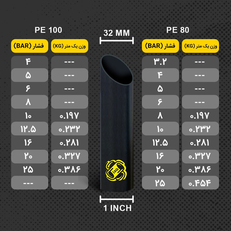 | PE80 | لوله سایز 32 | 8 | کلاف 150 متری |
