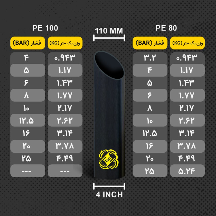 | PE80 | لوله سایز 110 | 4 | شاخه 12 متری |