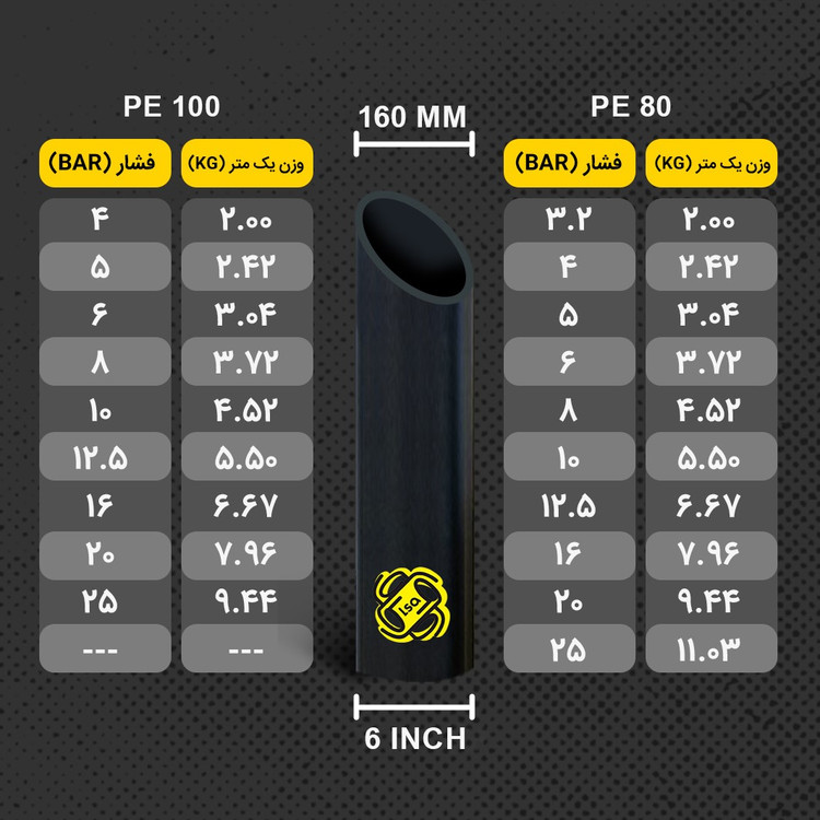 | PE80 | لوله سایز 160 | 3.2 | شاخه 12 متری |