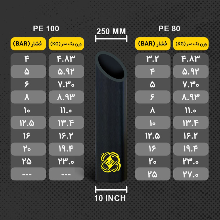 | PE80 | لوله سایز 250 | 3.2 | شاخه 12 متری |