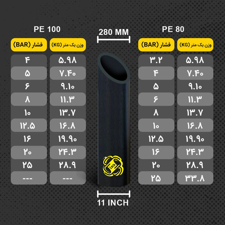 لوله پلی اتیلن 280 میلیمتر _ لوله شرق آسیا _ قیمت 1 متر