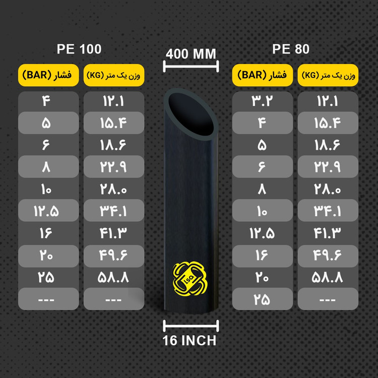 | PE لوله | سایز اسمی لوله | فشار | شاخه بندی |