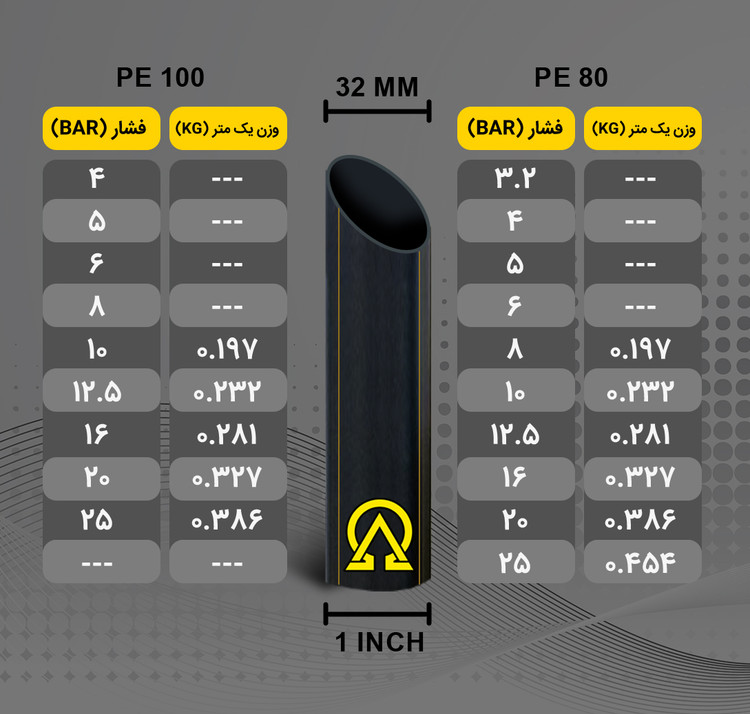 | PE80 | لوله سایز 32 | 8 | کلاف 150 متری |