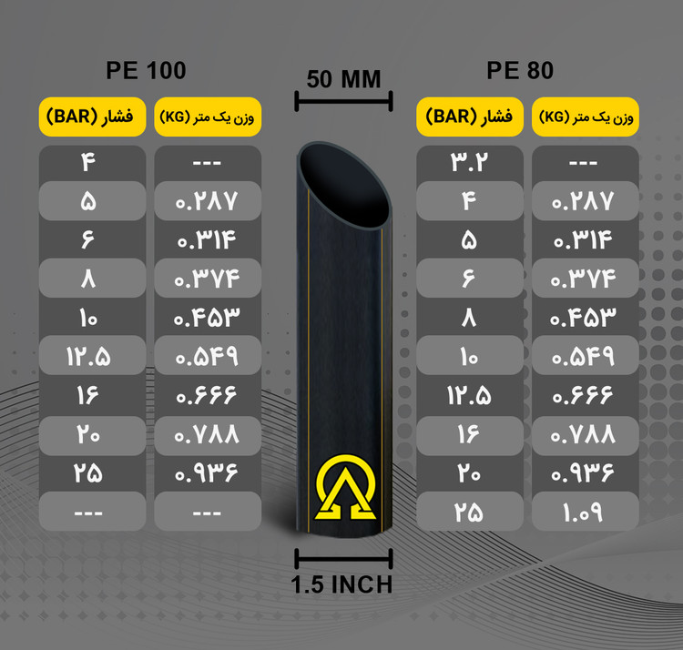 | PE80 | لوله سایز 50 | 6 | کلاف 100 متری |