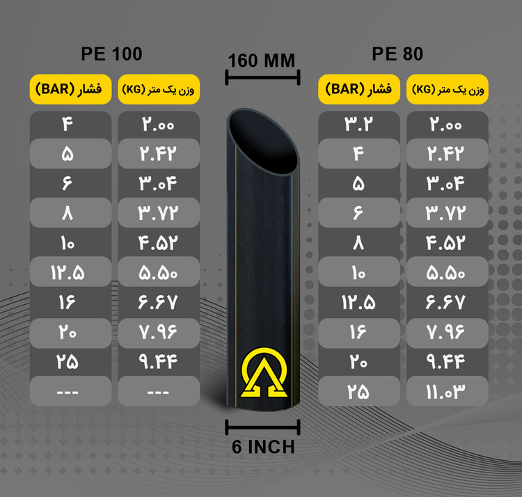 | PE80 | لوله سایز 160 | 3.2 | شاخه 12 متری |