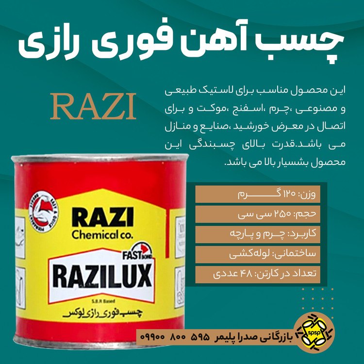 چسب آهن فوری برند : رازی حجم: 250cc وزن: 120 گرمی کاربرد: چرم و پارچه ساختمانی: لوله کشی تعداد در کارتن: 48 عددی . . . @bazarganisadra_ . ارسال به ارتباط با ما 09900800594 09900800595 05138920751 . .